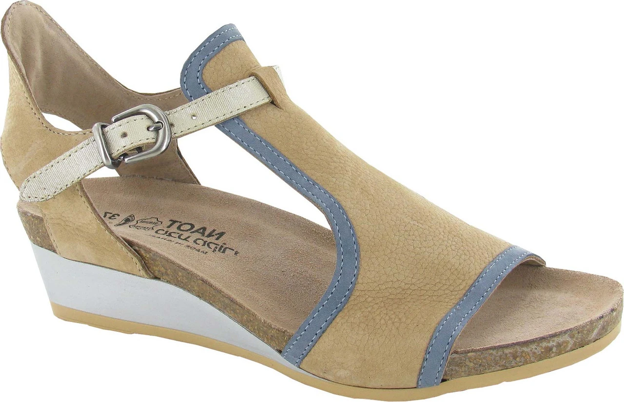 Englin’s Fine Footwear presents the women’s ‘Fiona’ from Naot. The Fiona is the perfect transitional wedge. This style features a full coverage upper with a contrasting trim. A functioning buckles creates accessibility while the padded heel cup provides comfort. Naot’s anatomic cork & latex footbed is wrapped in a pampering suede and molds to the shape of the foot with wear.