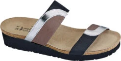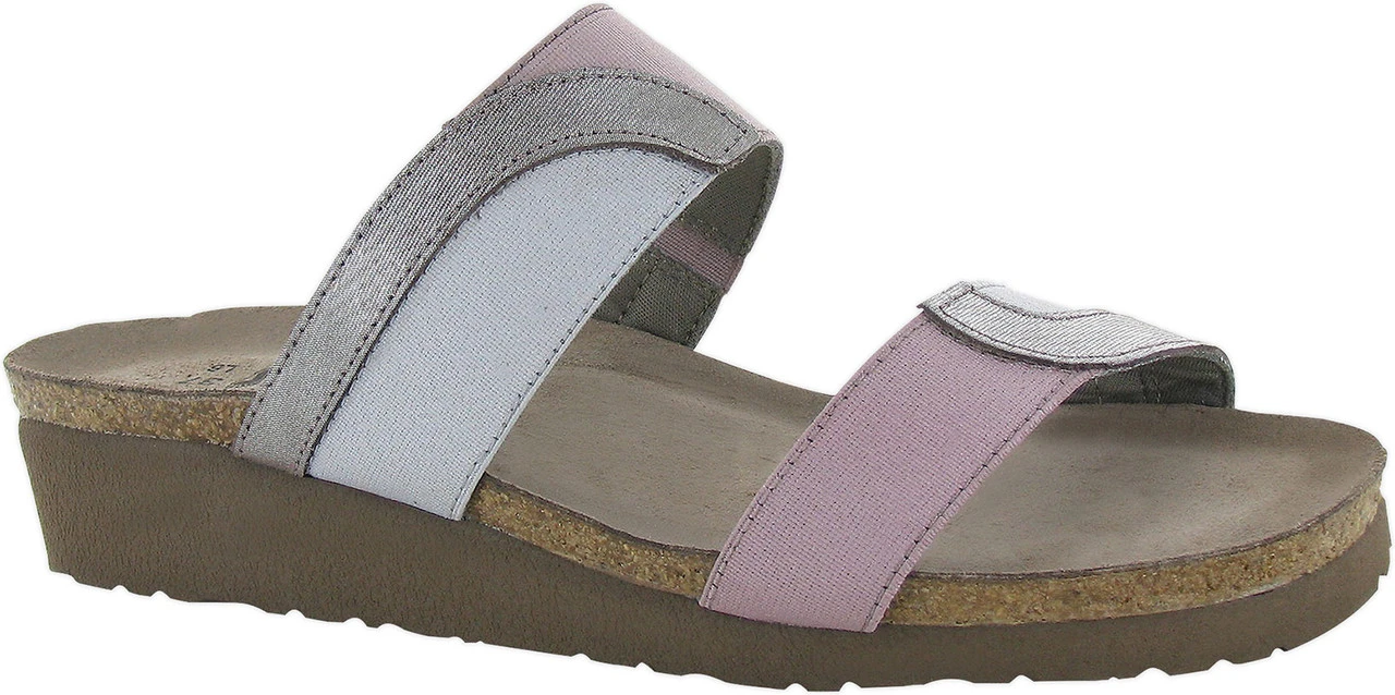 Englin’s Fine Footwear presents the women’s ‘Frankie’ from Naot. The Frankie is a fun & colorful slide sandal. This style has padded technical lining that provides comfort & absorbs moisture. The Frankie features gore at the instep for adjustability. Naot’s anatomic cork & latex footbed is wrapped in a pampering suede and molds to the shape of the foot with wear.
