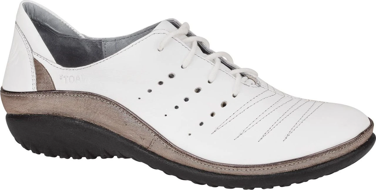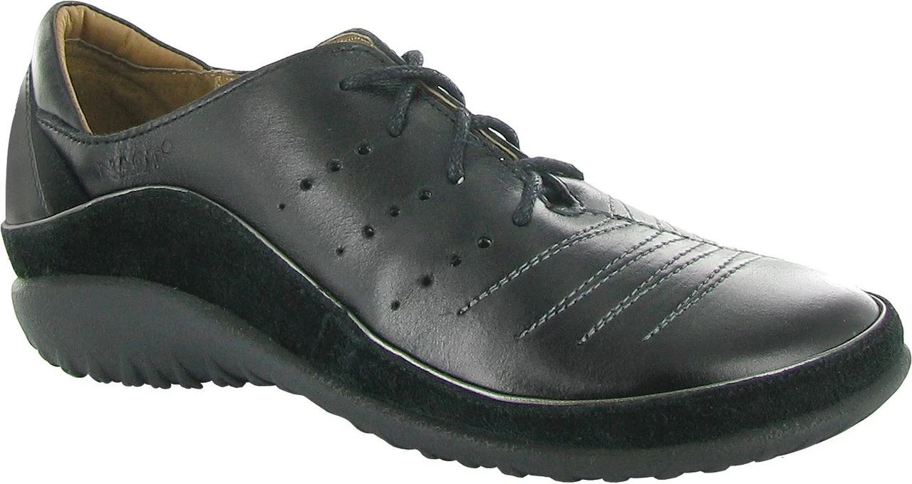 Englin’s Fine Footwear presents the ‘Kumara’ from Naot. The Kumara is a great, everyday lace up shoe. This style has a slightly padded tongue and a padded heel cup for additional stability & comfort. The front portion of the Kumara features padded technical lining which provides comfort and absorbs moisture. Naot’s removable, anatomic cork & latex footbed is wrapped in pampering suede and molds to the shape of the foot with wear. The Koru Collection features a 1″ polyurethane sole which is extremely lightweight, durable & slip resistant. This collection uses a hand-sewn stroble construction making it strong and extremely flexible.