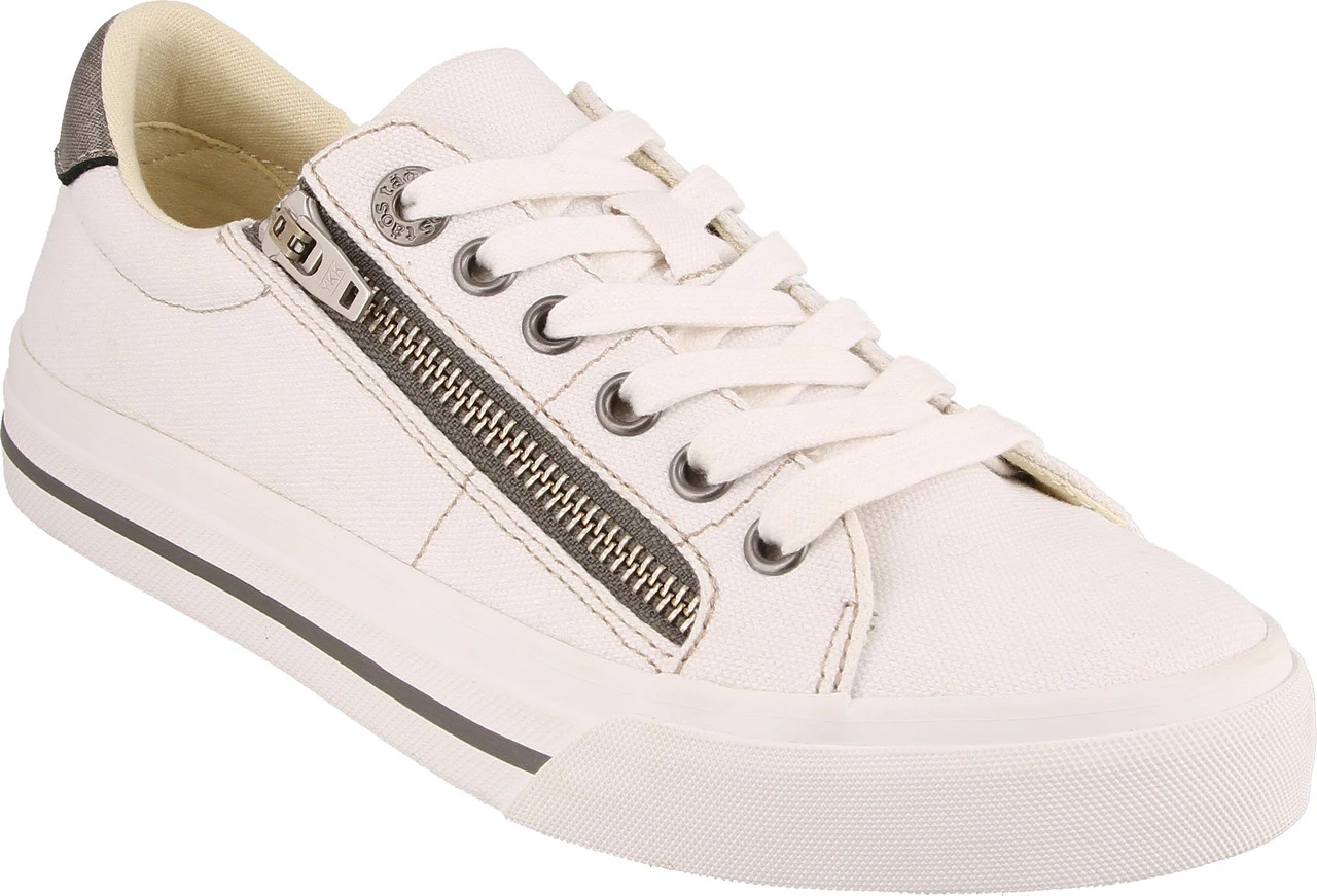 Englin’s Fine Footwear presents the women’s ‘Z Soul’ from Taos. Cute, stylish, and comfortable! Z Soul has arrived with an outside zipper for easy accessibility, along with lace up adjustability for a custom fit. Z Soul canvas sneaker has the Curves & Pods® premium removable footbed which gives you the arch and metatarsal support that your feet will thank you for.